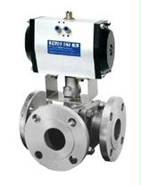 Q644F气动三通球阀概述: 气动三通球阀可分为L形和T形,L形(Q44F)三通球阀用于介质流向的切换,能使相互垂直的两个通道连接;T形(Q45F)三通球阀用于介质分流、合流及流向切换。T形三通可以使三个通道相互连通或使其中的两个通道连通。三通球阀一般采用两阀座结构,亦可根据用户要求采用四阀座结构。